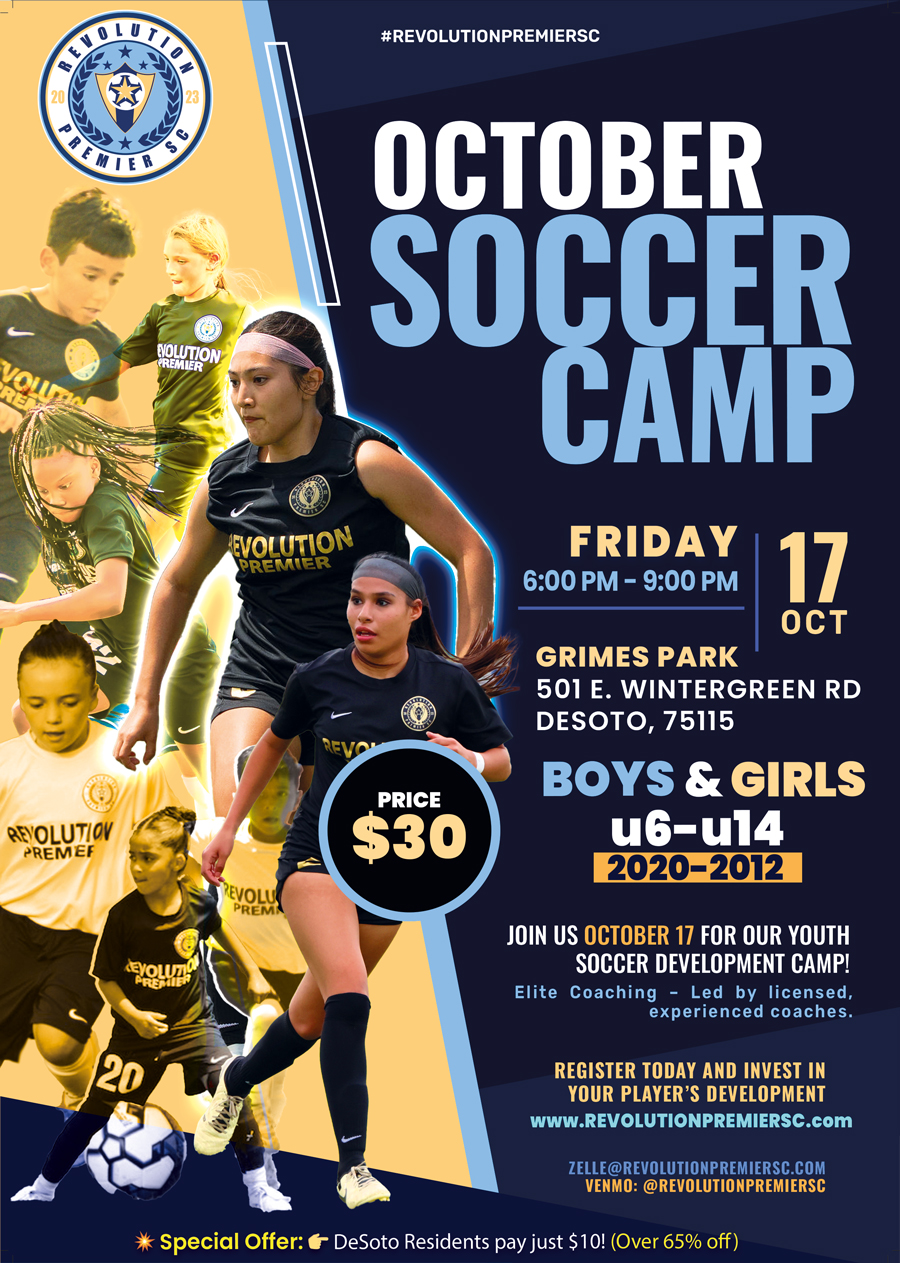 Revolution is excited to announce our upcoming October youth soccer camp, designed to sharpen skills, enhance development, and have fun while doing it!